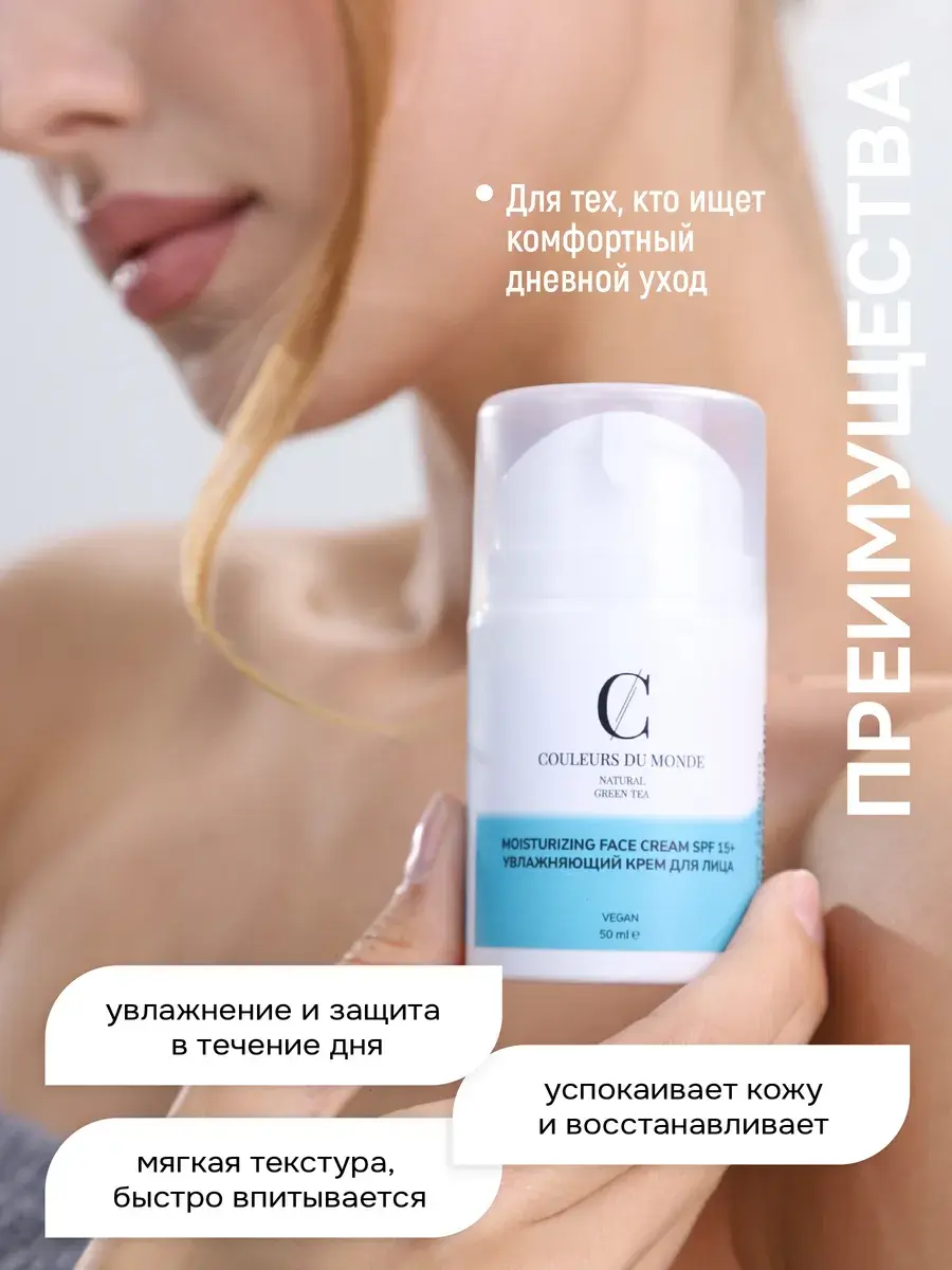 Премиум увлажняющий крем с SPF 15+ от бренда Couleurs du monde создан для сухой кожи, обеспечивая защиту от солнечных лучей и восстанавливая ее структуру. В составе формулы присутствуют церамиды и пантенол, которые помогают в выравнивании тона и делают кожу гладкой и упругой. Этот продукт идеально подходит как женщинам, так и мужчинам, включая подростков.