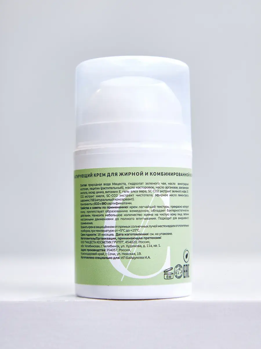 Матирующий крем для лица натуральный с зеленым чаем для лица SPF 15+ 1 шт.